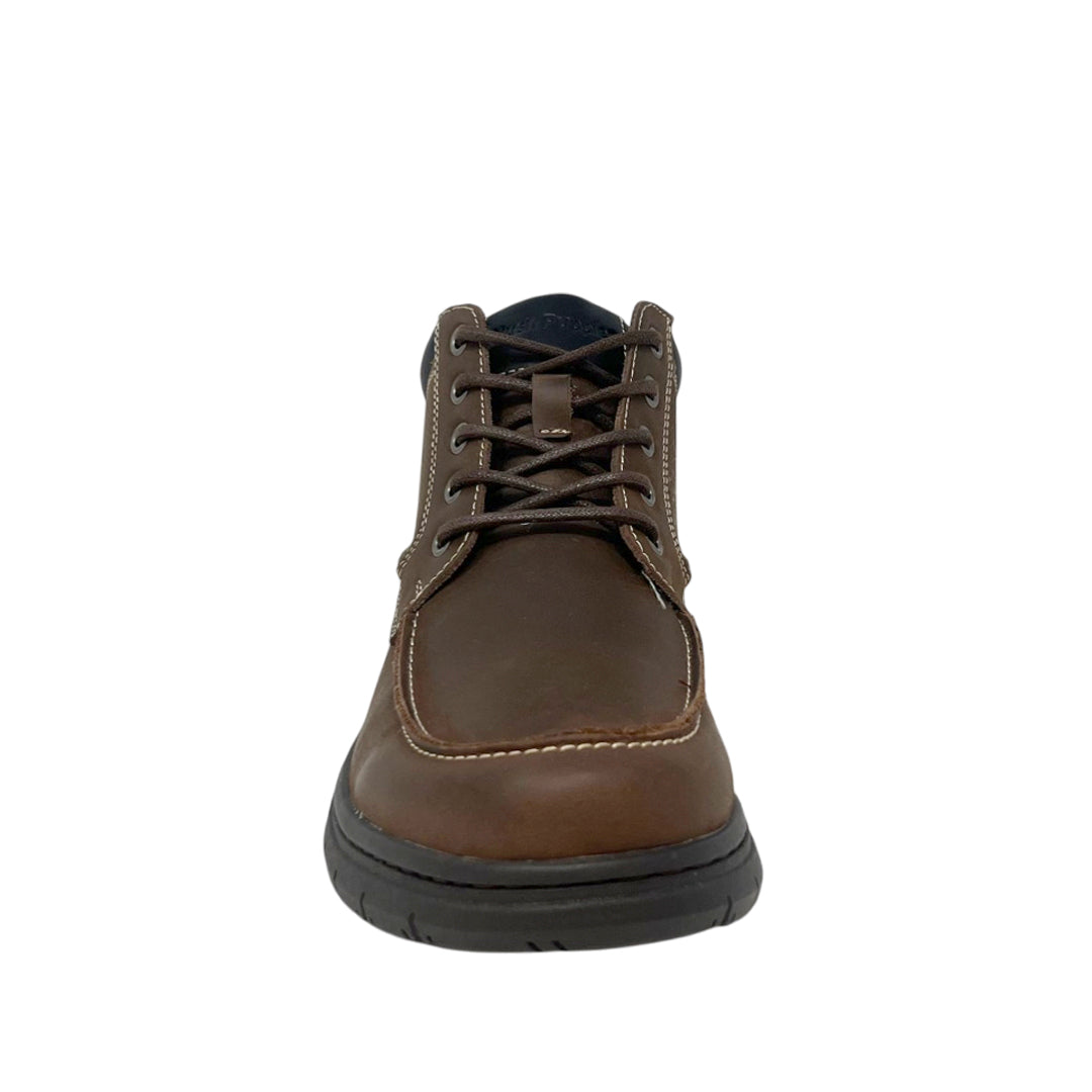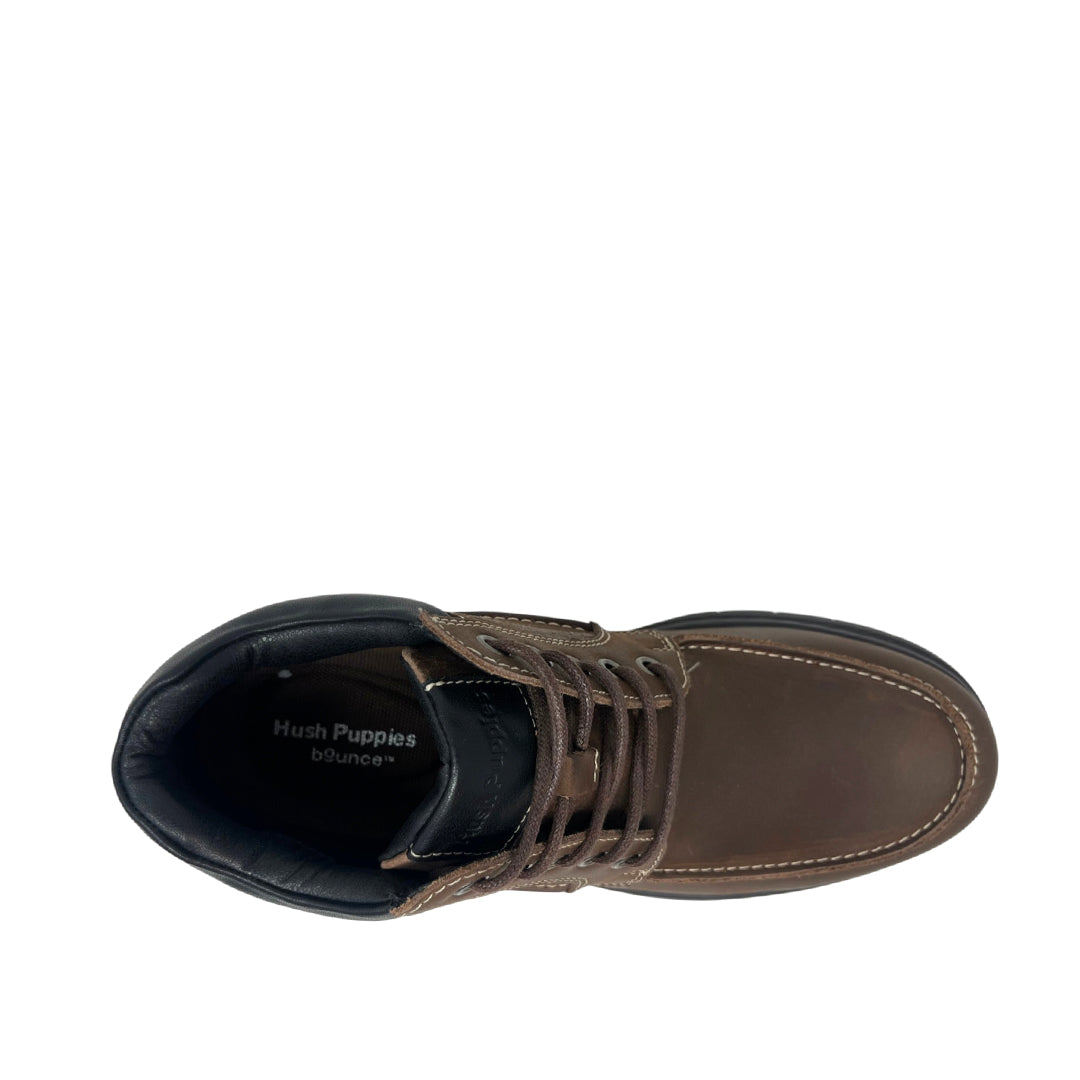 Botas Gyon para hombre en color café, elaboradas en cuero y hule. Incorporan tecnología Bounce™ con plantilla extraíble que brinda comodidad, rebote de energía en cada paso y gran durabilidad para acompañarte durante el día a día.